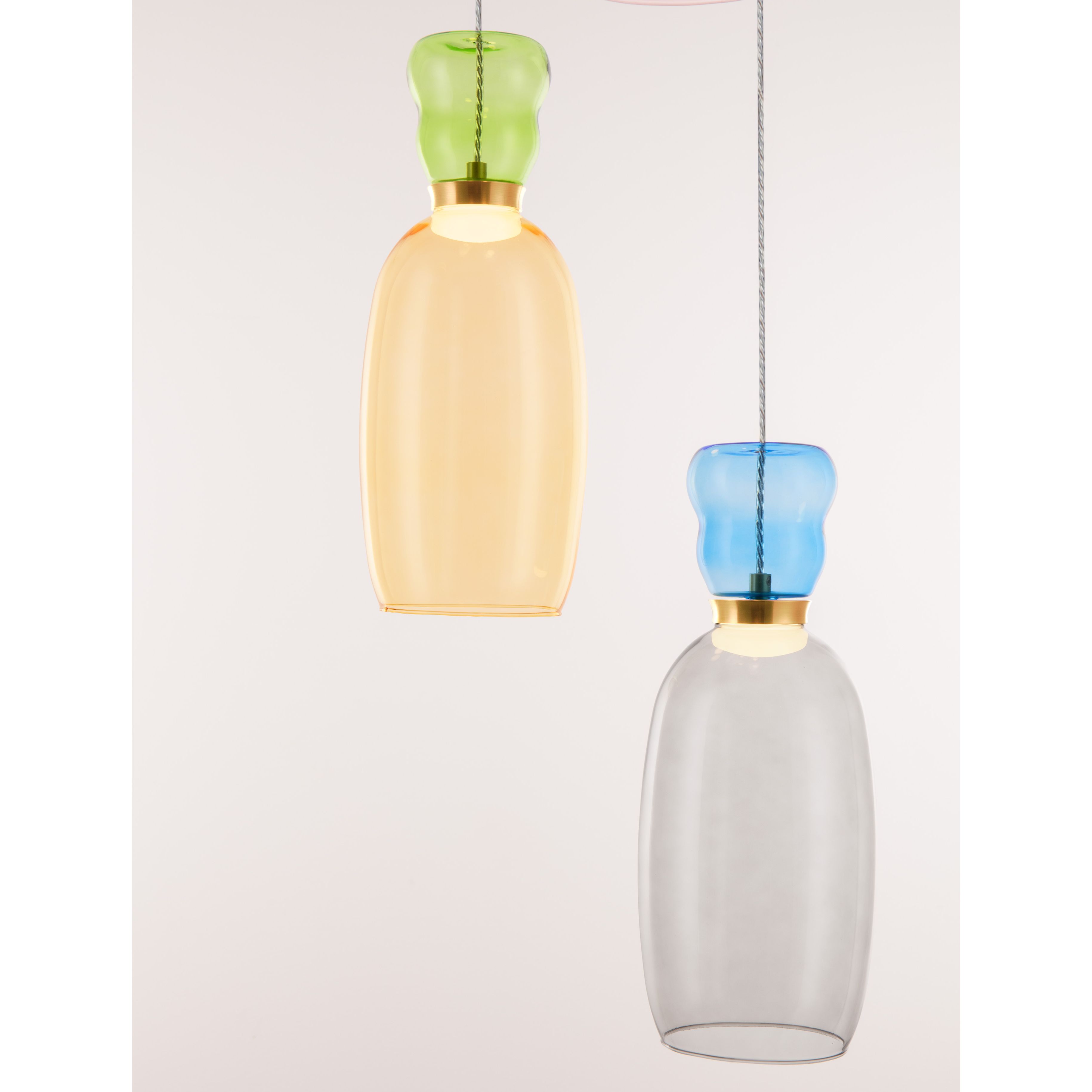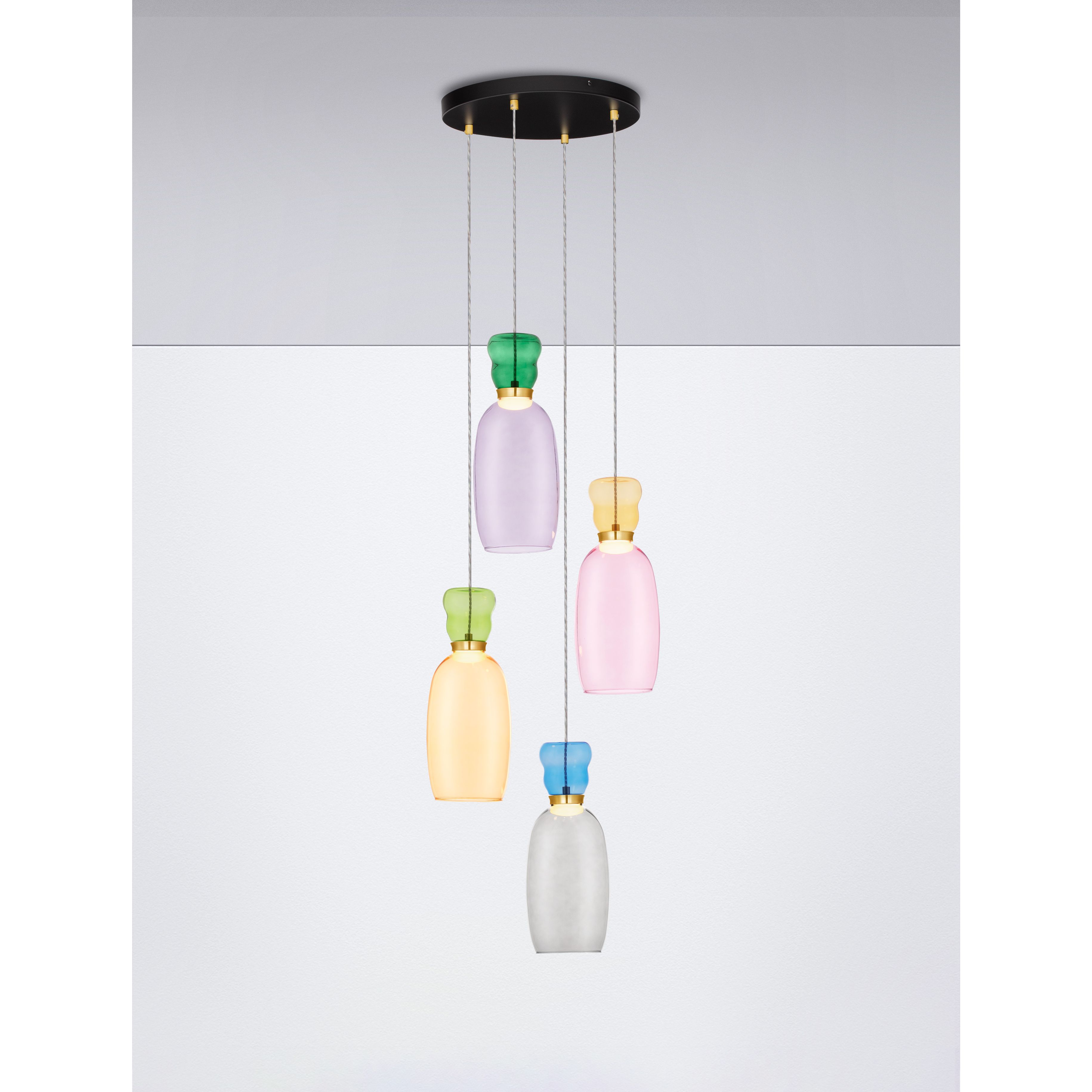 Kleur | goud, glanzend jaspis, paars, geel, roze, lichtgroen, lichtblauw en cyaan glas |